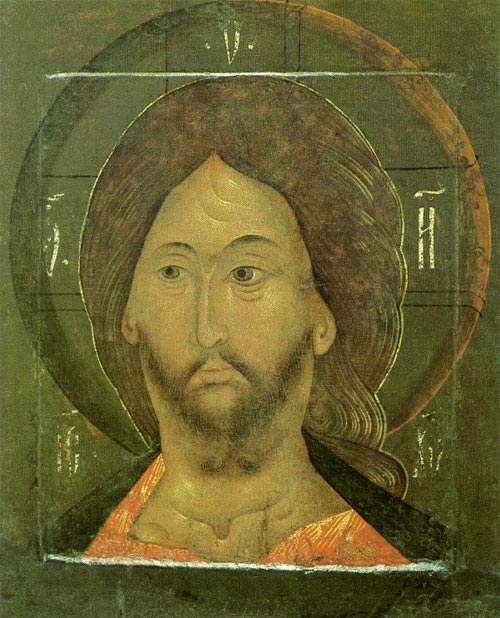 "Our Saviour with the wet beard" Novgorod icon, 15-16th century.